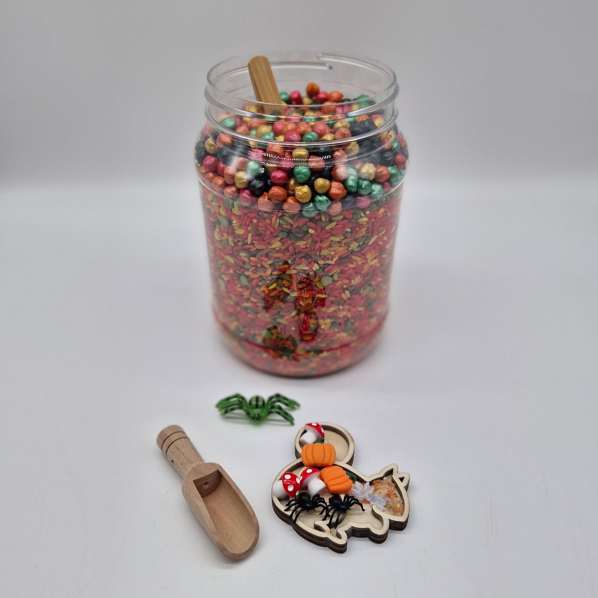 Spelen met onze gekleurde speelrijst prikkelt zoveel zintuigen! Wat denk je van het zien van alle kleuren, het gevoel van de rijst die door je vingers glijdt, de rijst die je hoort tikken tijdens het spelen. Sommige mixen hebben zelfs ook geur!